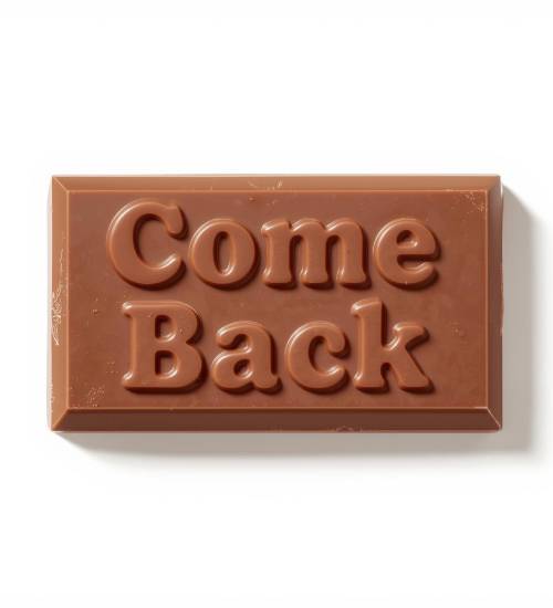 Handmade chocolate letters spelling “COME BACK”, perfect for emotional and heartfelt gifting.